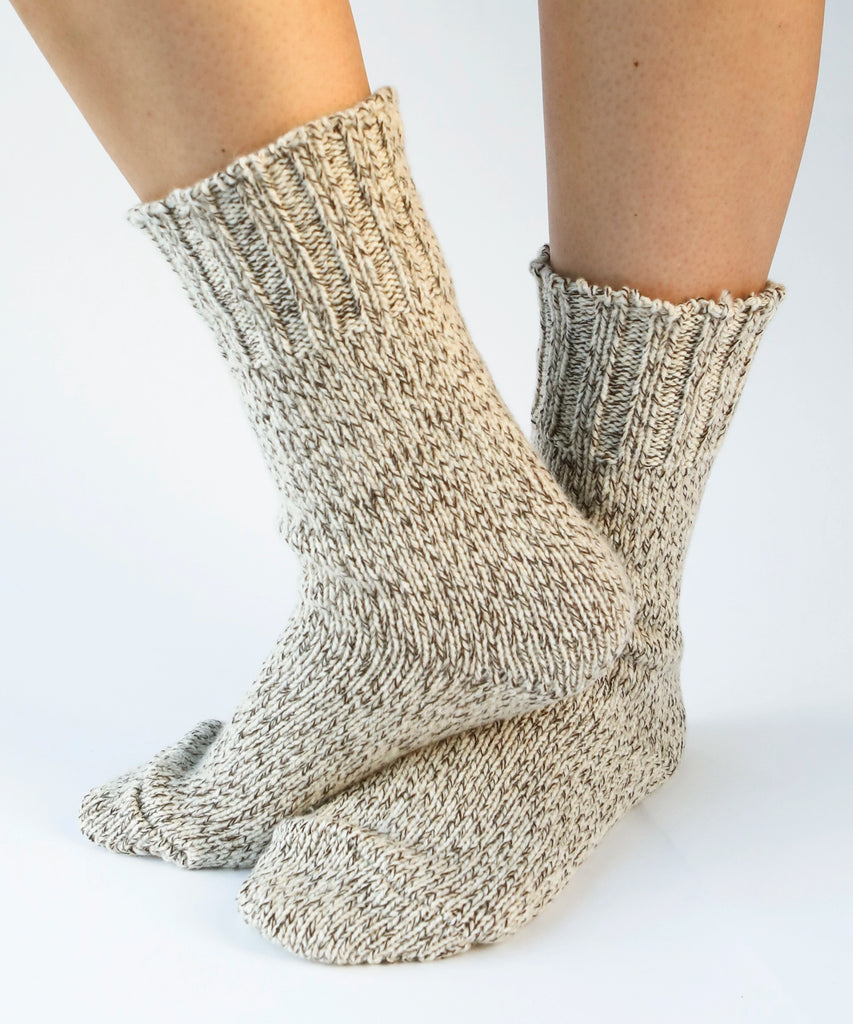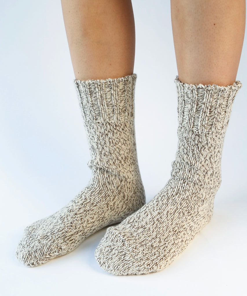 Cozy and durable 100% wool socks that sit 10” high from the ankle. Wear them with your boots or around the house or cabin. Made in Canada. Thick gauge, heritage quality.