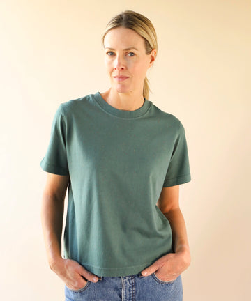 Boxy Cotton Fleck Tshirt | Blue Spruce