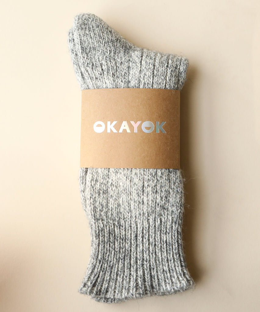 Cozy socks made with a 50/50 blend of cotton and wool. Thicker weight with no elastic or compression. Okayok socks are made on non-computerized antique sock machines, lending to their vintage quality.